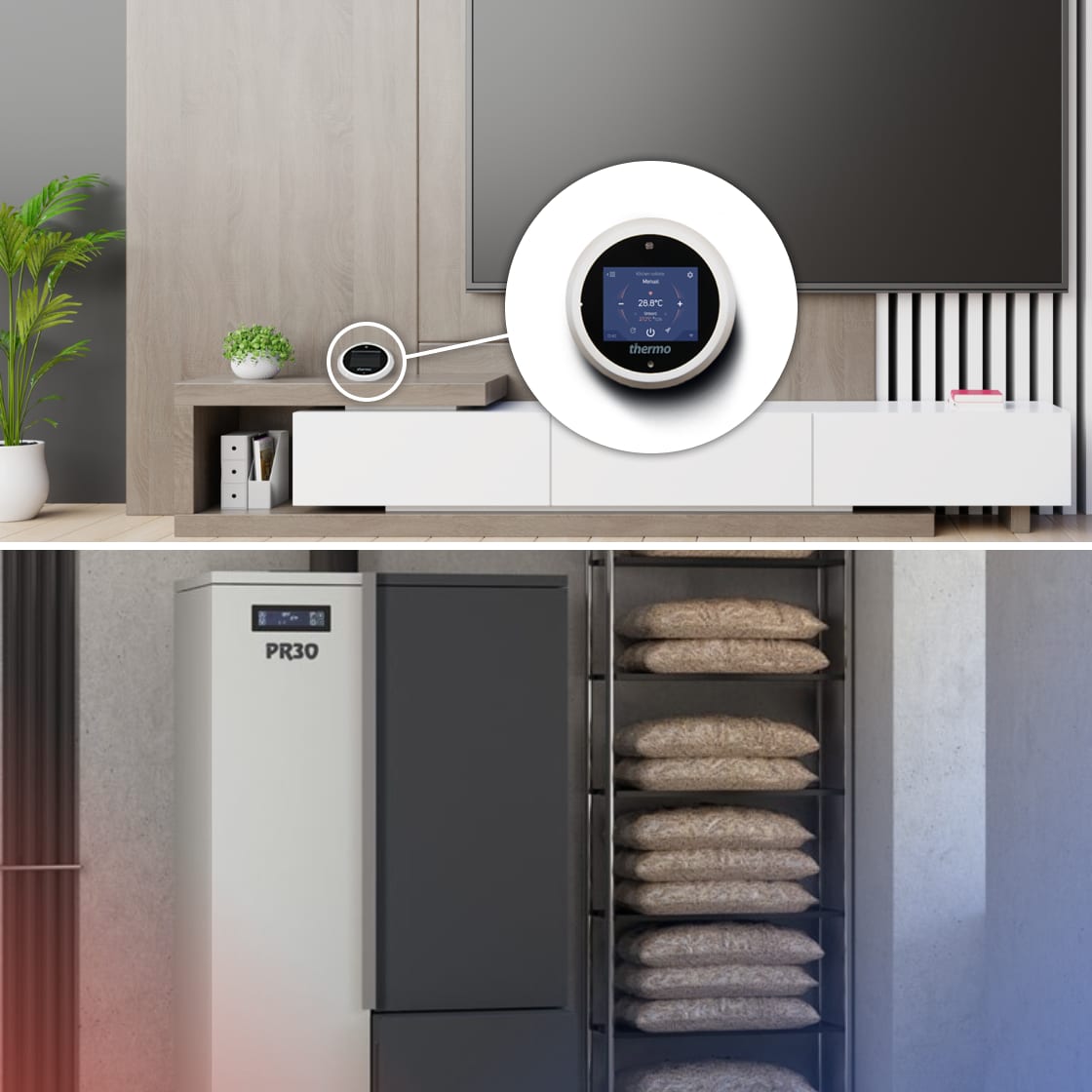PS Thermo adapts to your environment with flexible sensor options — built-in, wireless, or wired — for precise control in any setup, from cozy homes to solar water systems.